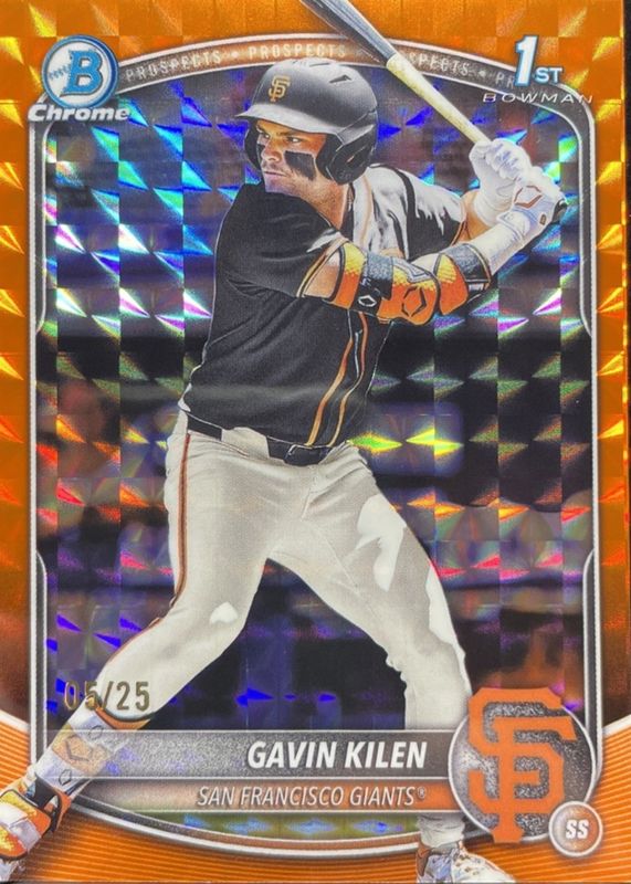 Auctions Ending Soon for Gavin Kilen 2025 Bowman Draft #BDC-40 Chrome - Orange Geometric Refractor /25 (1st) RAW