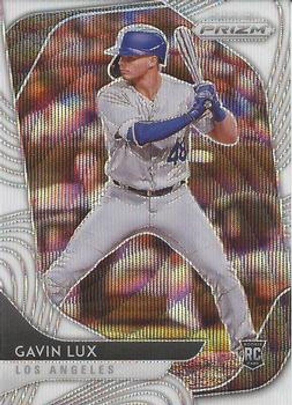 The Gavin Lux 2020 Prizm #198 White Wave Rookie card is 1 of 61 Gavin Lux's card variations in the 2020 Prizm set being tracked by Sports Card Investor, including Base, Blue, Carolina Blue, Cosmic Haze, and Green.