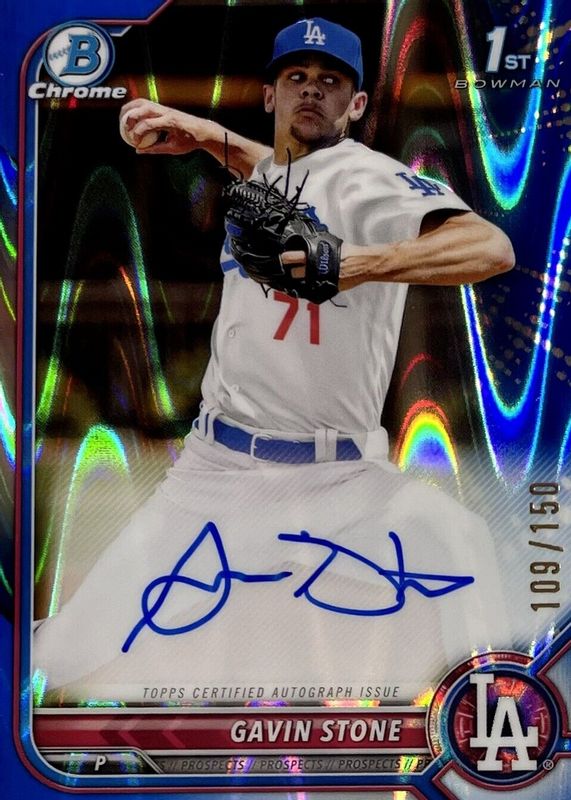Gavin Stone 2022 Bowman Chrome 1st Prospect Blue RayWave Refractor Auto /150