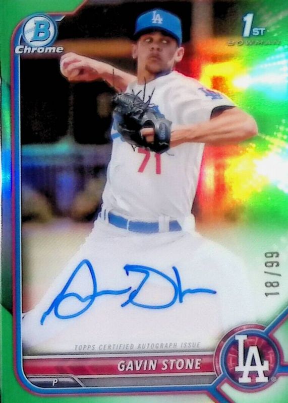 Auctions Ending Soon for Gavin Stone 2022 Bowman Chrome #CPA-GS Prospect Auto - Green Refractor /99 (1st) RAW