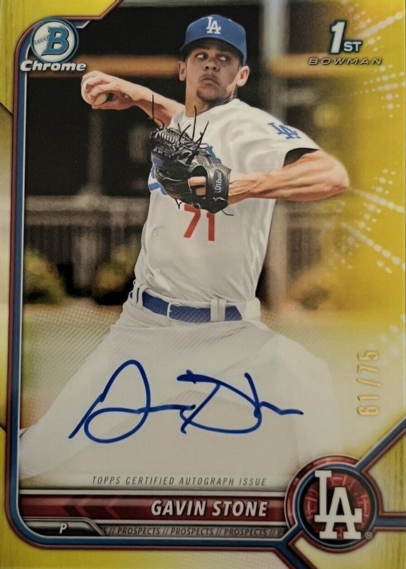 Gavin Stone 2022 Bowman Chrome #CPA-GS Prospect Auto - Yellow Refractor /75 (1st) RAW Price Guide