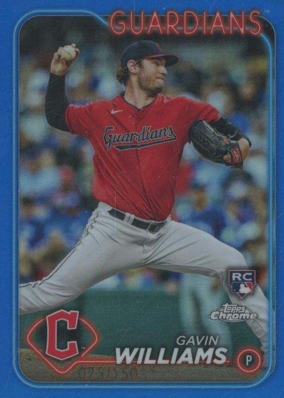 2024 Topps Chrome Gavin Williams Blue Refractor RC #/150 #15 Guardians