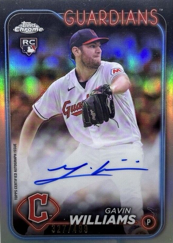 The Gavin Williams 2024 Topps Chrome #RA-GW Rookie Autographs - Refractor /499 card in Raw condition has moved down -$5.49 (-30.5%) in the last 30 days and was last sold for $12.50 .