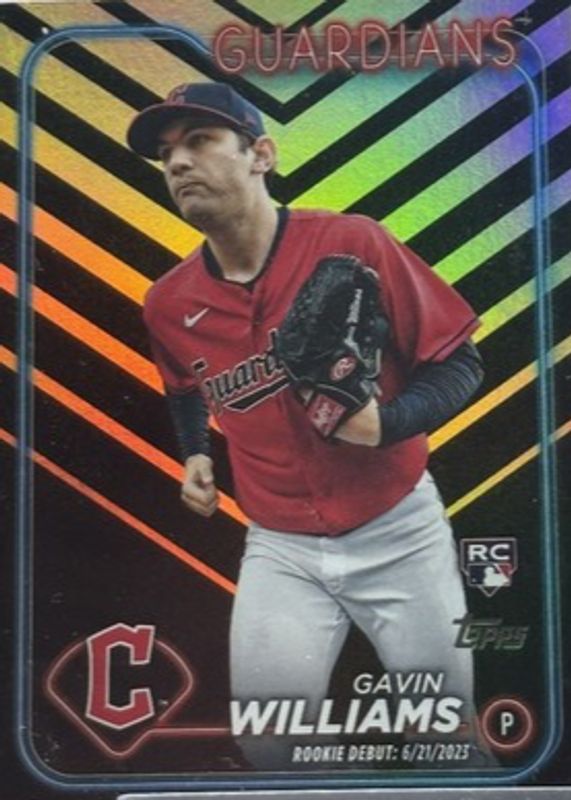 The Gavin Williams 2024 Topps Update #US294 Rookie Debut - Orange & Black Foil card in Raw condition has not changed in price in the last 30 days and was last sold for $1.00 .