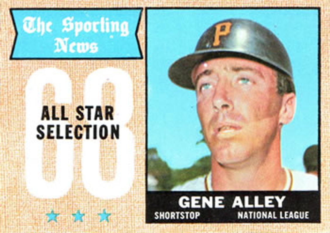The Gene Alley 1968 Topps #368 Base card is 1 of 3 Gene Alley's card variations in the 1968 Topps set being tracked by Sports Card Investor, including Base, and Game.