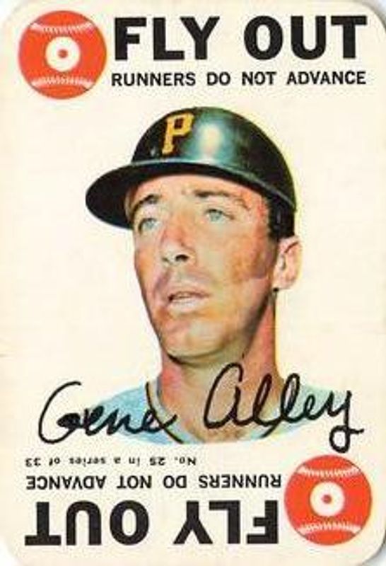 The Gene Alley 1968 Topps #25 Game card is 1 of 3 Gene Alley's card variations in the 1968 Topps set being tracked by Sports Card Investor, including #368 Base, and #53 Base.