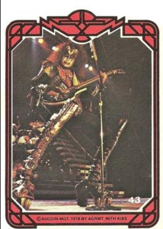 The Gene Simmons 1978 Donruss Kiss #43 Base card is 1 of 7 Gene Simmons' card variations in the 1978 Donruss Kiss set being tracked by Sports Card Investor, including #27 Base, #4 Base, #50a Base, #51b Base, and #57b Base.
