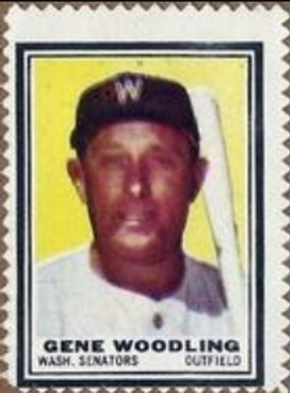 The Gene Woodling 1962 Topps #NNO Stamps card is 1 of 3 Gene Woodling's card variations in the 1962 Topps set being tracked by Sports Card Investor, including #125a Base, and #125b Base.