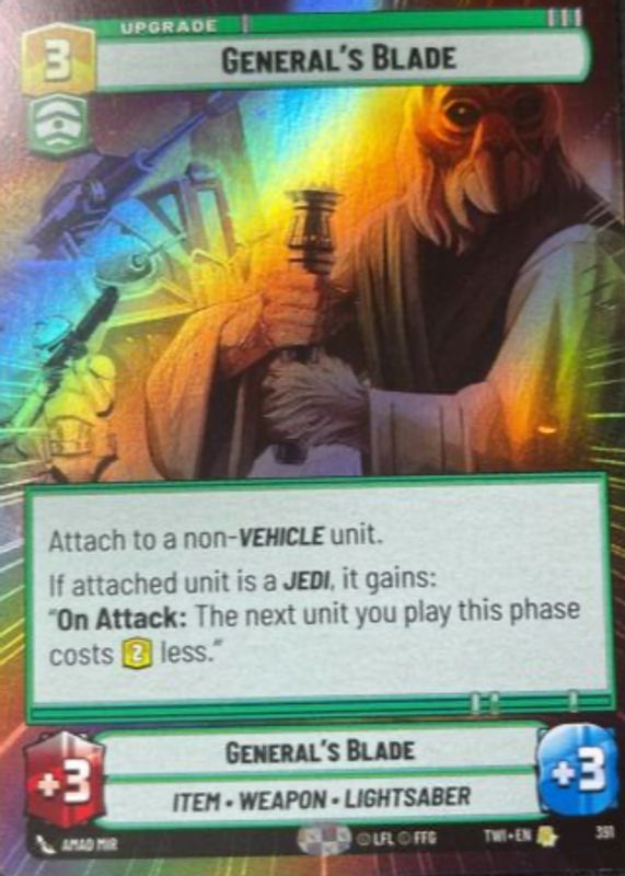 Star Wars Unlimited TWI - General’s Blade - Rare Hyperspace Foil Card 391