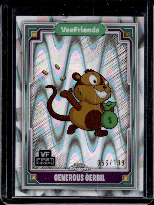 The Generous Gerbil 2025 Topps Chrome VeeFriends #37 RayWave Refractor /199 card is 1 of 20 Generous Gerbil's card variations in the 2025 Topps Chrome VeeFriends set being tracked by Sports Card Investor, including Base, Refractor, Yellow Refractor, Shimmer Refractor /250, and Wave Refractor /150.
