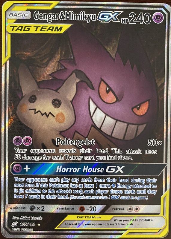 Gengar & Mimikyu GX 2019 Sun & Moon: Team Up #165/181 Holo (Alternate Full Art) RAW TCG (NEAR MINT) Price Guide