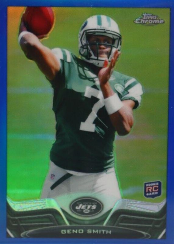 The Geno Smith 2013 Topps Chrome #21 Blue Refractor /199 Rookie card in Raw condition has moved up $2.01 (+25.2%) in the last 30 days and was last sold for $10.00 .