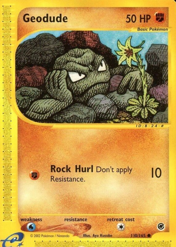 The Geodude 2002 Expedition #110/165 Base card in Raw TCG (Near Mint) condition has not changed in price in the last 30 days and was last sold for $3.99 .