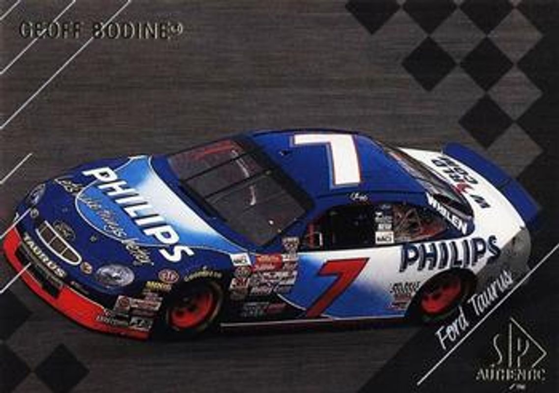 The Geoff Bodine 1998 SP Authentic #41 Base card is 1 of 3 Geoff Bodine's card variations in the 1998 SP Authentic set being tracked by Sports Card Investor, including #7 Base, and #73 Base.