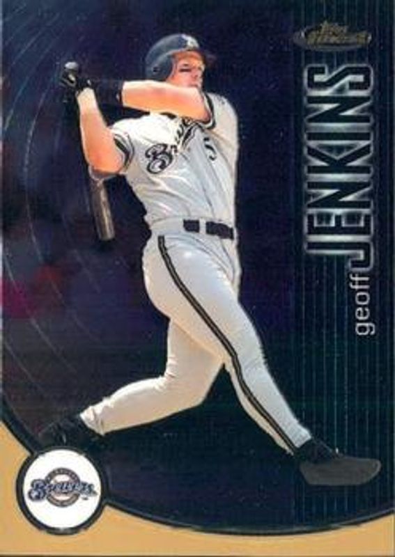 The Geoff Jenkins 2001 Topps Finest #102 Base /999 card is 1 of 2 Geoff Jenkins' card variations in the 2001 Topps Finest set being tracked by Sports Card Investor, including Refractors /499.