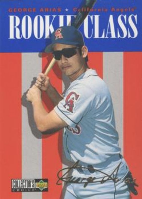 The George Arias 1996 Upper Deck Collector's Choice #426 Gold Signatures Rookie card is 1 of 3 George Arias' card variations in the 1996 Upper Deck Collector's Choice set being tracked by Sports Card Investor, including Base, and Silver Signatures.