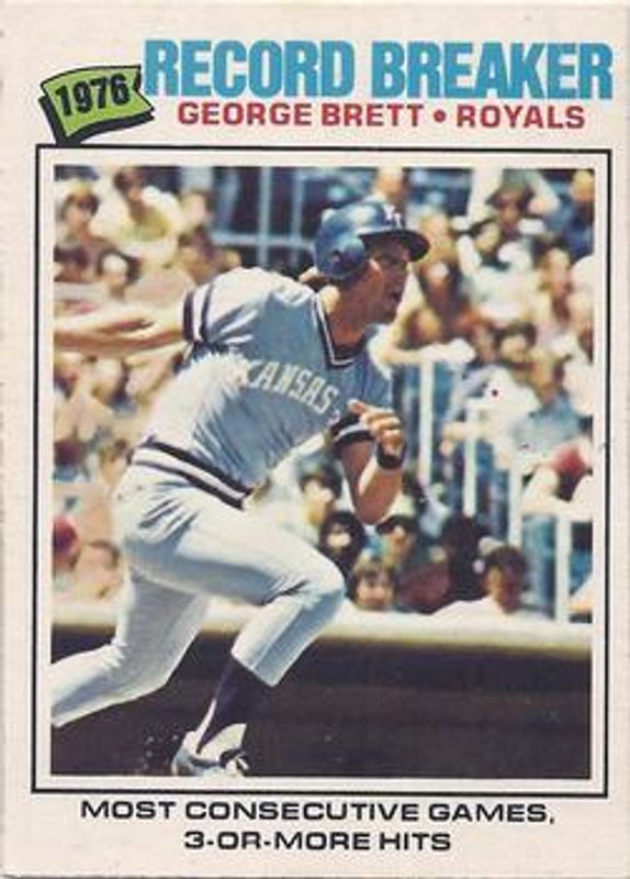 The George Brett 1977 O-Pee-Chee #261 Base card is 1 of 2 George Brett's card variations in the 1977 O-Pee-Chee set being tracked by Sports Card Investor, including Base.