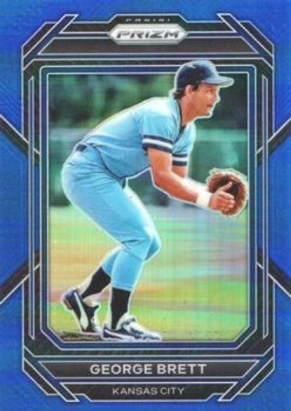 The George Brett 2023 Prizm #81 Blue /149 card is 1 of 38 George Brett's card variations in the 2023 Prizm set being tracked by Sports Card Investor, including Base, Blue Ice, Giraffe, Green Ice, and Hyper.