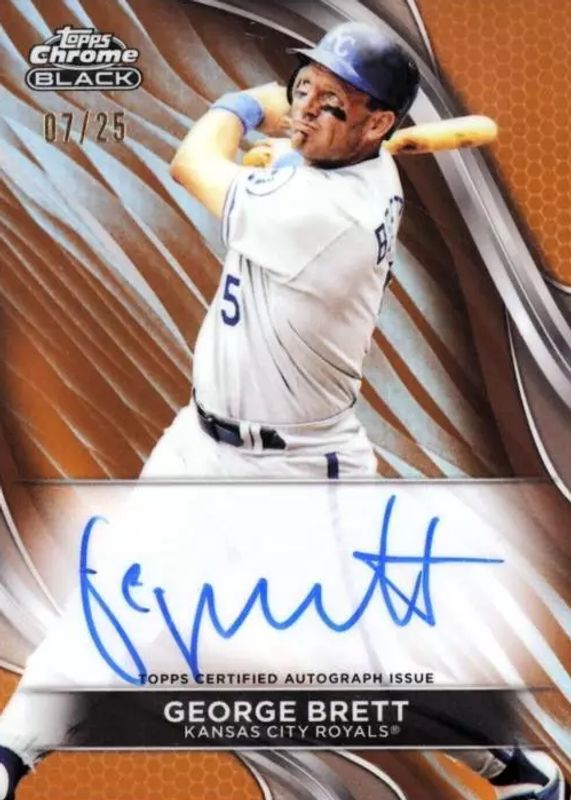Best Prices Available For Sale of George Brett 2024 Topps Chrome Black #CBA-GB Autographs - Orange Refractor /25