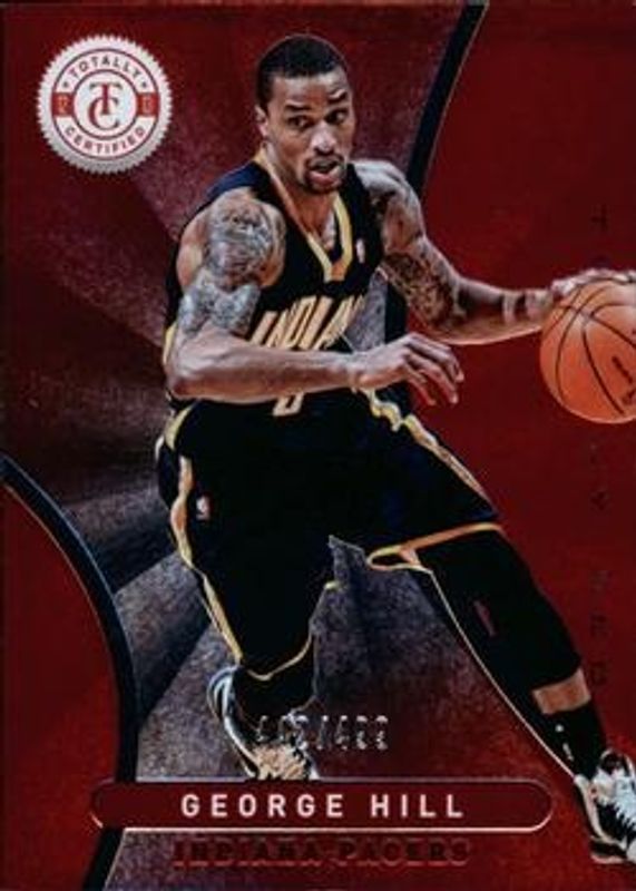 The George Hill 2012 Totally Certified #101 Totally Red /499 card is 1 of 10 George Hill's card variations in the 2012 Totally Certified set being tracked by Sports Card Investor, including Base, Totally Blue /299, Totally Gold /25, Totally Green /5, and Printing Plate Black /1.