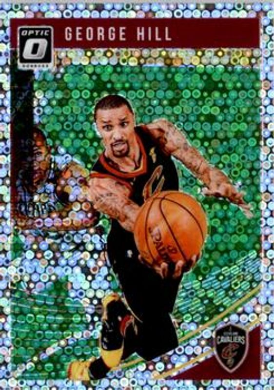 The George Hill 2018 Optic #108 Fast Break card is 1 of 20 George Hill's card variations in the 2018 Optic set being tracked by Sports Card Investor, including Holo, Purple, Premium Box Set /249, Lime Green /149, and Fast Break Purple /95.