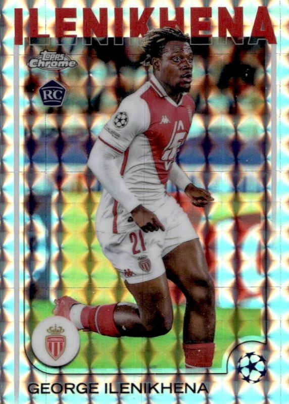 The George Ilenikhena 2024 Topps Chrome UEFA Club Competitions #185 Geometric Refractor Rookie card in Raw condition has not changed in price in the last 30 days and was last sold for $0.99 .