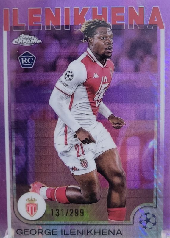 The George Ilenikhena 2024 Topps Chrome UEFA Club Competitions #185 Violet Prism Refractor /299 Rookie card in Raw condition has not changed in price in the last 30 days and was last sold for $4.95 .