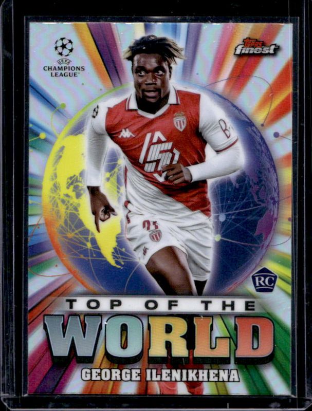 The George Ilenikhena 2024 Topps Finest UEFA Club Competitions #TW-12 Top of the World Rookie card is 1 of 68 George Ilenikhena's card variations in the 2024 Topps Finest UEFA Club Competitions set being tracked by Sports Card Investor, including Base, Refractor, Purple Refractor /299, Sky Blue Refractor /275, and Pink RayWave Refractor /250.