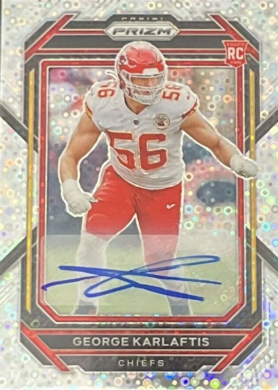 The George Karlaftis 2022 Prizm #378 Rookie Autographs - No Huddle card in Raw condition has not changed in price in the last 30 days and was last sold for $23.00 .