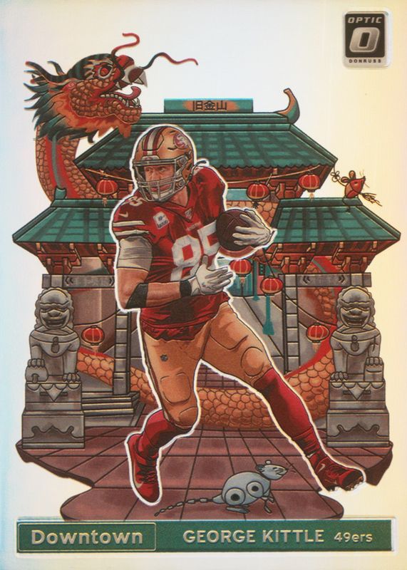 The George Kittle 2020 Optic #DT-11 Downtown /(SSP) card in Raw condition has moved up $115 (+16.4%) in the last 30 days and was last sold for $815.00 .