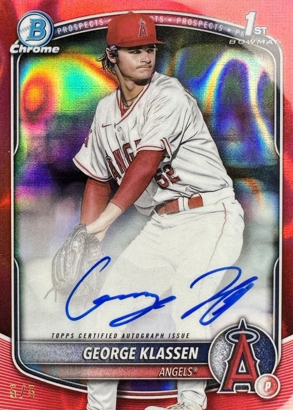 Auctions Ending Soon for George Klassen 2025 Bowman #CPA-GK Chrome Prospect Auto - Red Lava Refractor /5 (1st) RAW
