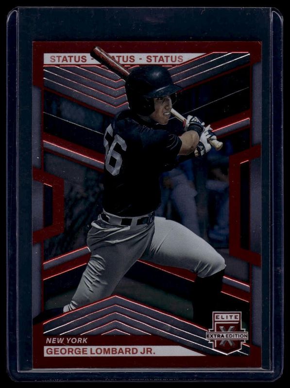 The George Lombard 2023 Elite Extra Edition #6 Status Red /199 card is 1 of 70 George Lombard's card variations in the 2023 Elite Extra Edition set being tracked by Sports Card Investor, including Base, Pink, Signatures, Status Green /499, and Aspirations Blue /349.
