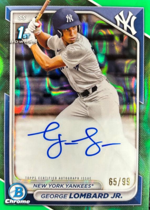 GEORGE LOMBARD JR. 2024 BOWMAN CHROME 1ST GREEN LAVA YANKEES AUTO /99 Q4520