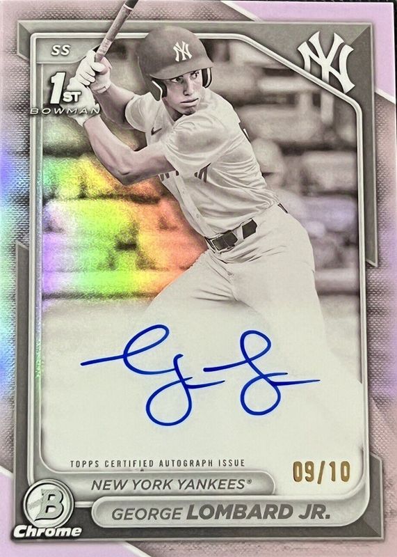 Auctions Ending Soon for George Lombard Jr. 2024 Bowman #CPA-GLO Chrome Prospect Auto - Pearl Refractor /10 (1st) RAW