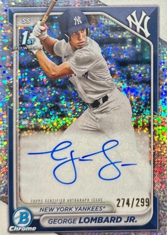 GEORGE LOMBARD JR. 2024 BOWMAN CHROME 1ST PROSPECT SPECKLE REFRACTOR AUTO 19/299