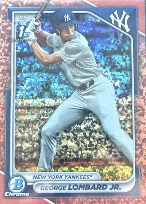 This card is 1 of 121 George Lombard Jr.'s card variations in the 2024 Bowman set being tracked by Sports Card Investor, including Chrome Prospects (1st), Paper Prospects (1st), Chrome Prospects - Lunar Glow Refractor (1st), Chrome Prospects - Mini-Diamond Refractor (1st), and Chrome Prospects - Pearl Refractor (1st).