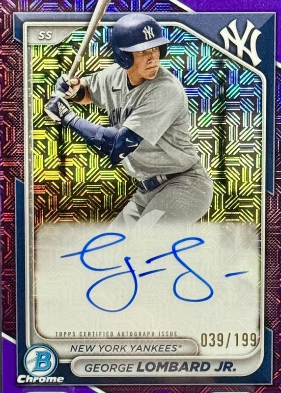 2024 BOWMAN GEORGE LOMBARD JR. 145/199 PURPLE MOJO AUTO BMA-GL NEW YORK YANKEES