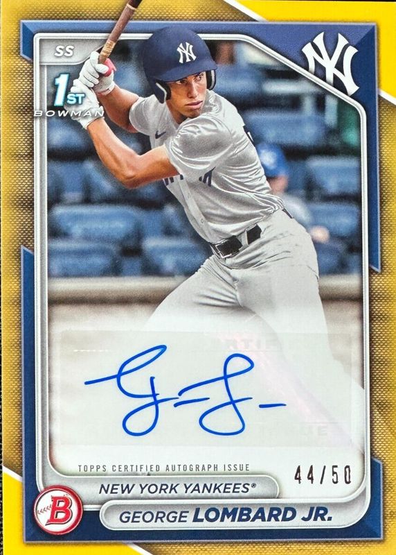 2024 Bowman George Lombard Jr Gold Paper Auto 12/50 Yankees Prospect PPRA-GL