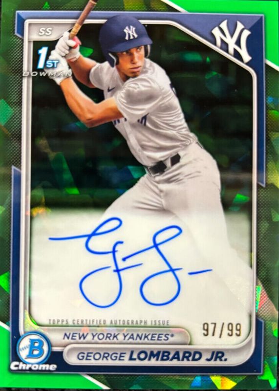 2024 BOWMAN CHROME SAPPHIRE GEORGE LOMBARD JR 67/99 GREEN ON CARD AUTO 1ST SP