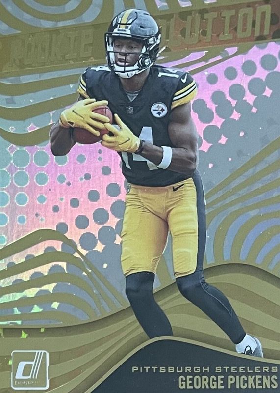 The George Pickens 2022 Donruss #REV-22 Rookie Revolution - Galactic /(SSP) card in Raw condition has not changed in price in the last 30 days and was last sold for $3.00 .