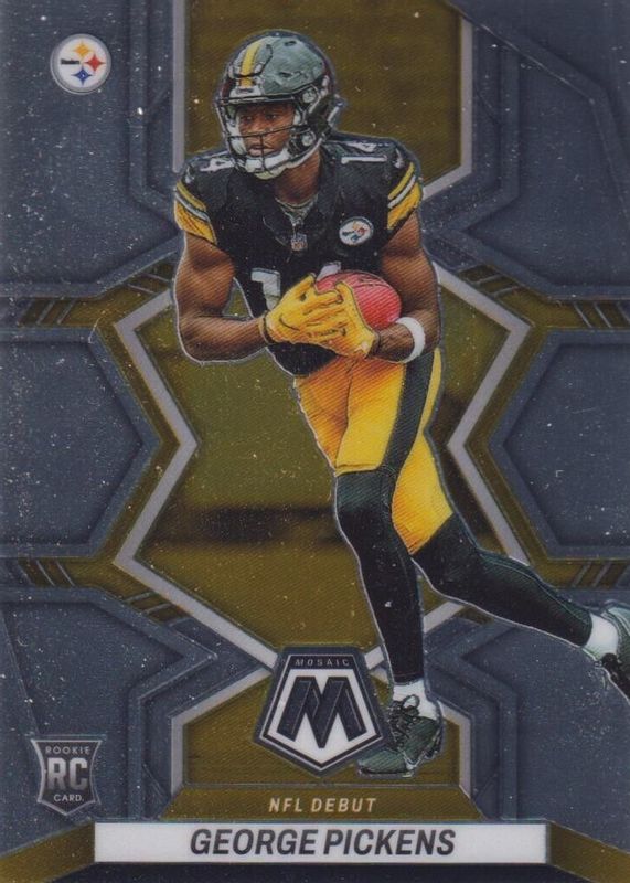 The George Pickens 2022 Mosaic #282 NFL Debut Rookie card in Raw condition has moved down -$0.01 (-0.5%) in the last 30 days and was last sold for $1.00 .