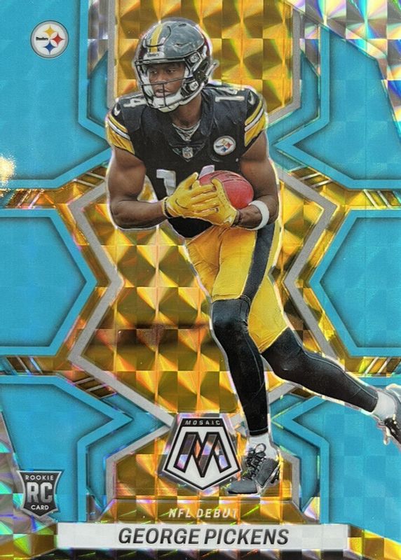The George Pickens 2022 Mosaic #282 NFL Debut - Blue Fluorescent /15 Rookie card in Raw condition has not changed in price in the last 30 days and was last sold for $46.00 .