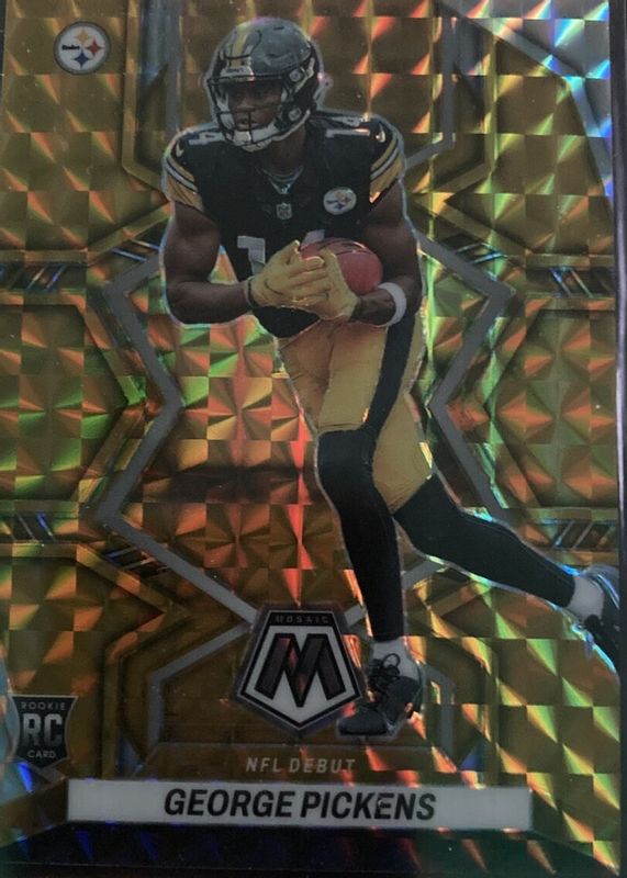 The George Pickens 2022 Mosaic #282 NFL Debut - Gold /10 Rookie card in Raw condition has not changed in price in the last 30 days and was last sold for $150.00 .