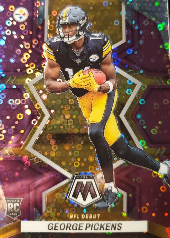 The George Pickens 2022 Mosaic #282 NFL Debut - No Huddle Purple /50 Rookie card in Raw condition has not changed in price in the last 30 days and was last sold for $5.50 .