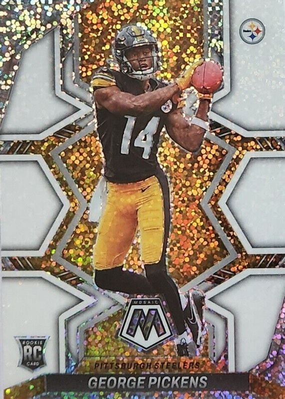 The George Pickens 2022 Mosaic #282 NFL Debut - White Sparkle /(SSP) Rookie card in Raw condition has not changed in price in the last 30 days and was last sold for $51.50 .