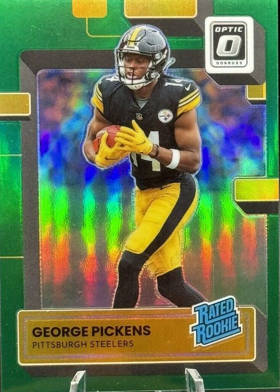 The George Pickens 2022 Optic #223 Green /5 Rookie card in Raw condition has not changed in price in the last 30 days and was last sold for $224.99 .