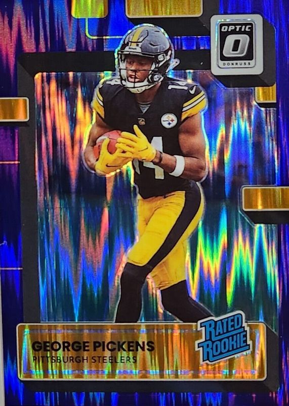The George Pickens 2022 Optic #223 Purple Shock Rookie card in Raw condition has moved down -$2.74 (-45.7%) in the last 30 days and was last sold for $3.25 .
