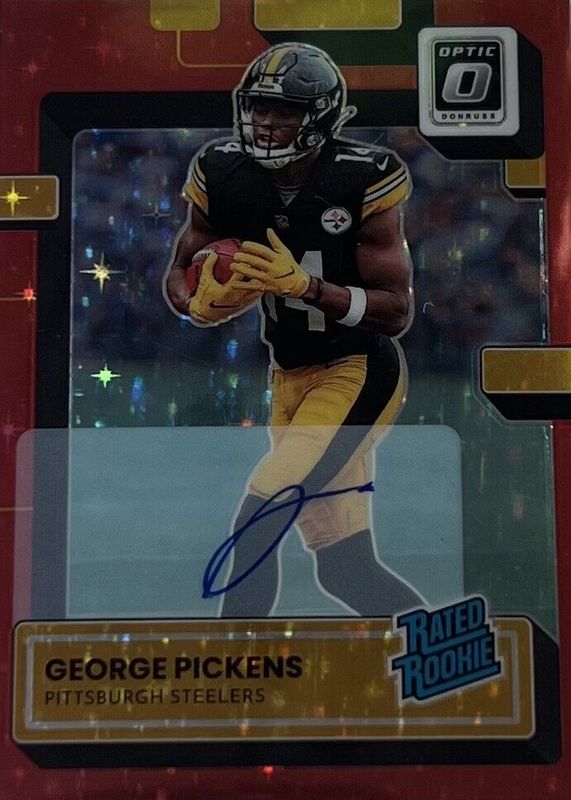The George Pickens 2022 Optic #223 Rated Rookie Autographs - Red Stars /11 card in Raw condition has not changed in price in the last 30 days and was last sold for $275.00 .