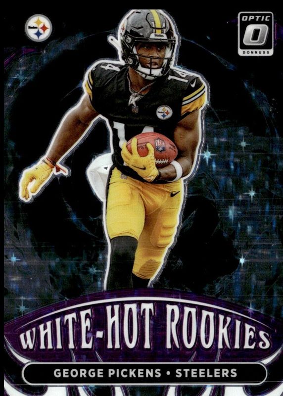 The George Pickens 2022 Optic #WHR-8 White Hot Rookies - Purple Stars /25 card in Raw condition has not changed in price in the last 30 days and was last sold for $15.50 .