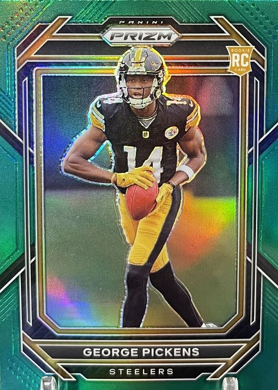 The George Pickens 2022 Prizm #329 Green Rookie card in Raw condition has moved up $0.25 (+8.3%) in the last 30 days and was last sold for $3.25 .